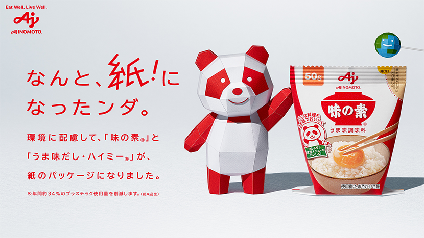 うま味調味料「味の素®」、「うま味だし・ハイミー®」袋入りのパッケージは、2022年3月以降に順次プラスチック包材から紙包材に変更します。