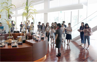 味の素グループの歴史や、うま味調味料「味の素」ができるまでの工程と発酵後にできる副生物を次の畑の恵みに活かす資源循環の仕組み(バイオサイクル)をジオラマで見学しました。
