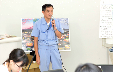 工場内の特別食堂で「エコうま」弁当を参加者、スタッフ、味の素社員が一緒になって食べました。